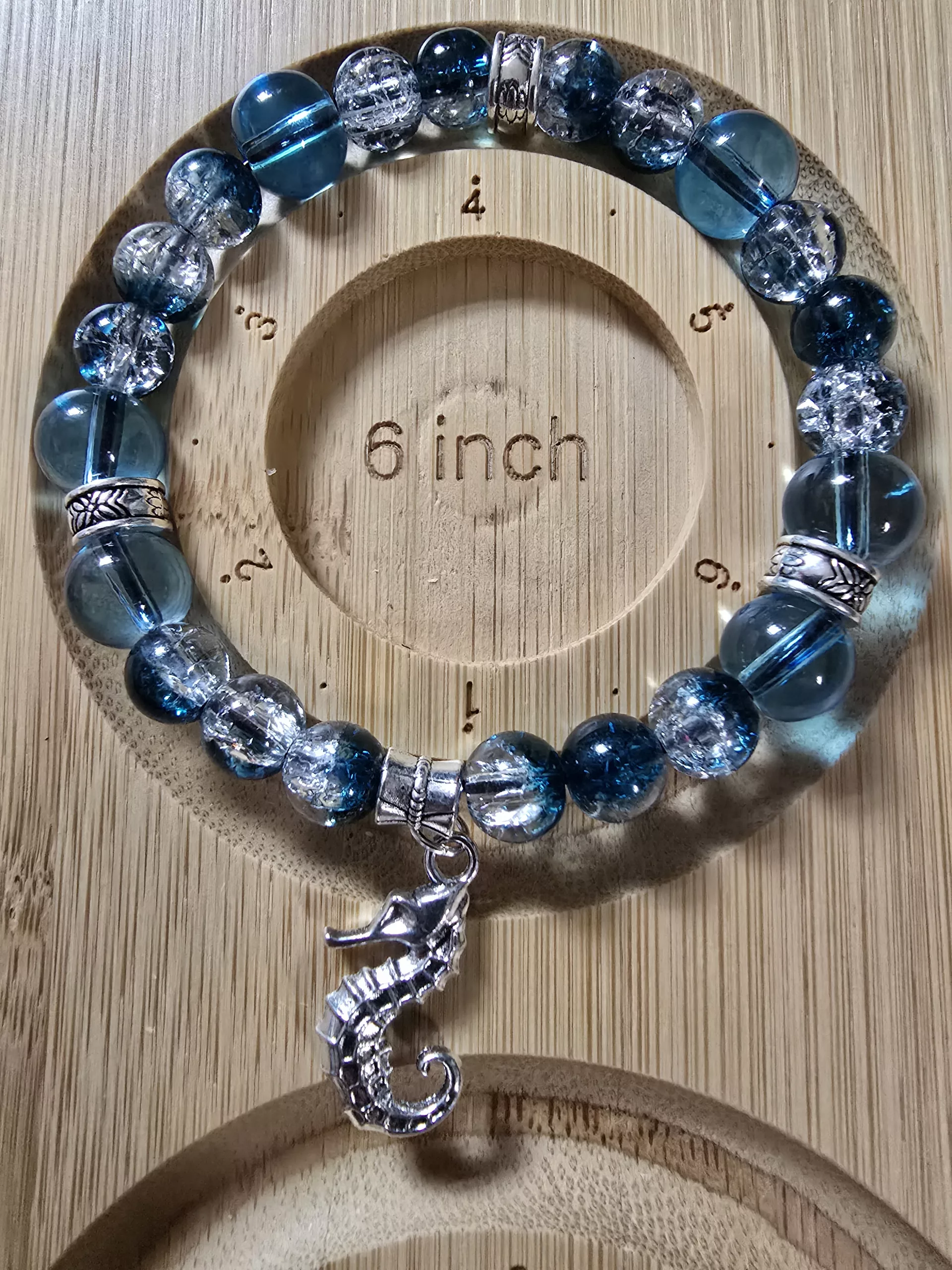 - Ocean-Inspired Design: Blue glass beads, silver spacers, and a charming seahorse charm.
